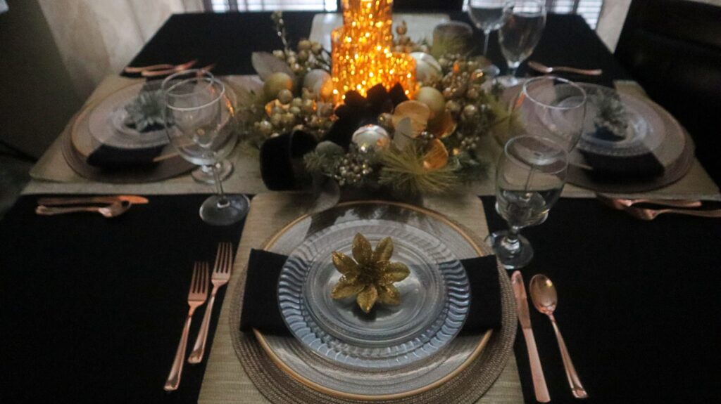 During the holiday season there’s tons of preparation, cooking and hosting for family and friends more than any other time of the year. And if you enjoy hosting small intimate dinners that are nice and elegant but are not sure how to make your dinner table match that fabulous menu. I will share with you some of the dining table essentials and how I styled my plain boring dinette table to look festive and elegant.