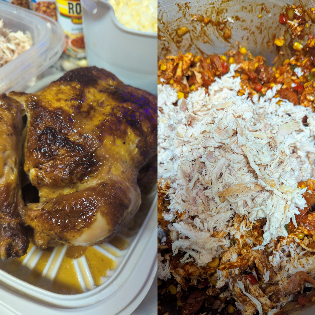 - This recipe calls for a rotisserie chicken, making it easy to prepare and saving you time in the kitchen. But please feel free to use ground beef, Turkey, or whatever your taste buds allow.